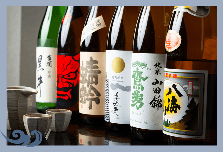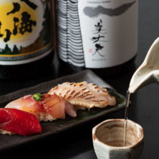 当店の日本酒は定番の銘柄だけではありません。常時10種類以上を揃え、寿司との相性を考えた定番銘柄から、「これ、初めて見ました」と思わず声が出るような希少な変わり種まで幅広く取り揃えています。ラインナップは時期に応じて入れ替わるため、訪れるたびに新しい出会いがあります。大将に「今日のおすすめは?」と聞いてみてください。