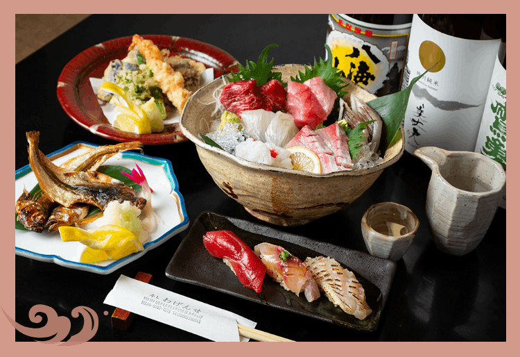 冬にはふぐやクエの鍋が湯気を立て、春先には新物のホタルイカが小鉢に並ぶ。「寿し わげんせ」は町寿司でありながら、季節の素材を活かした一品料理も愉しめるお店です。お造りの盛り合わせや天ぷらなど、握りの合間に箸を伸ばしたくなる肴が揃います。お好みやその日の気分に合わせて、おすすめの一皿もご案内いたします。